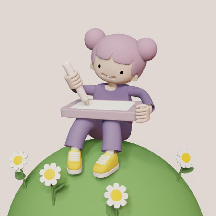 Little pinky girl in the garden, minding her own business and drawing on her tablet! I really enjoy working in Blender. Check out the video!