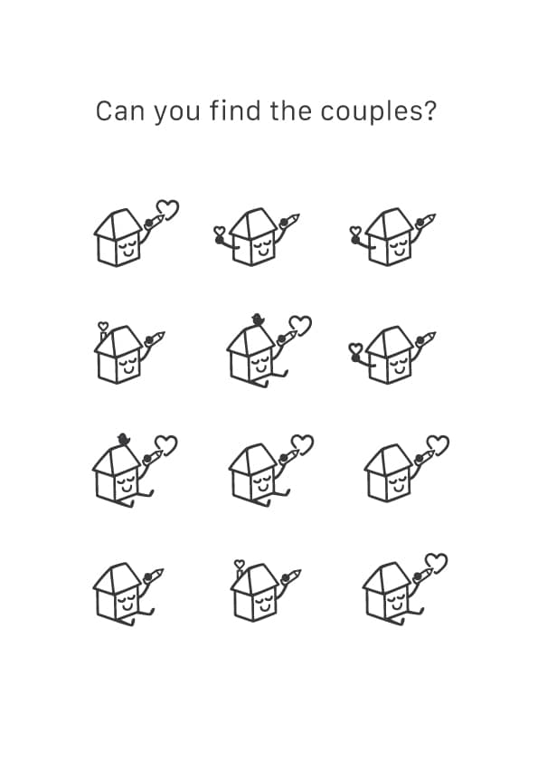 Happy house is a house who represented a Montessori kindergarten in Slovenia. If you want, you can print “Can you find a couples?” and play a game! You will find it bellow, the last picture. But actually those graphics were the options and different variations of the logo.