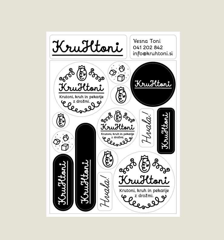 KRUHTONIBy / BRANDING, PACKAGING, PRODUCT DESIGN Adobe Photoshop, Adobe Illustrator Kruhtoni is a small simple project for bread maker. We made logo, packaging design and some stickers. And a sticker pack!