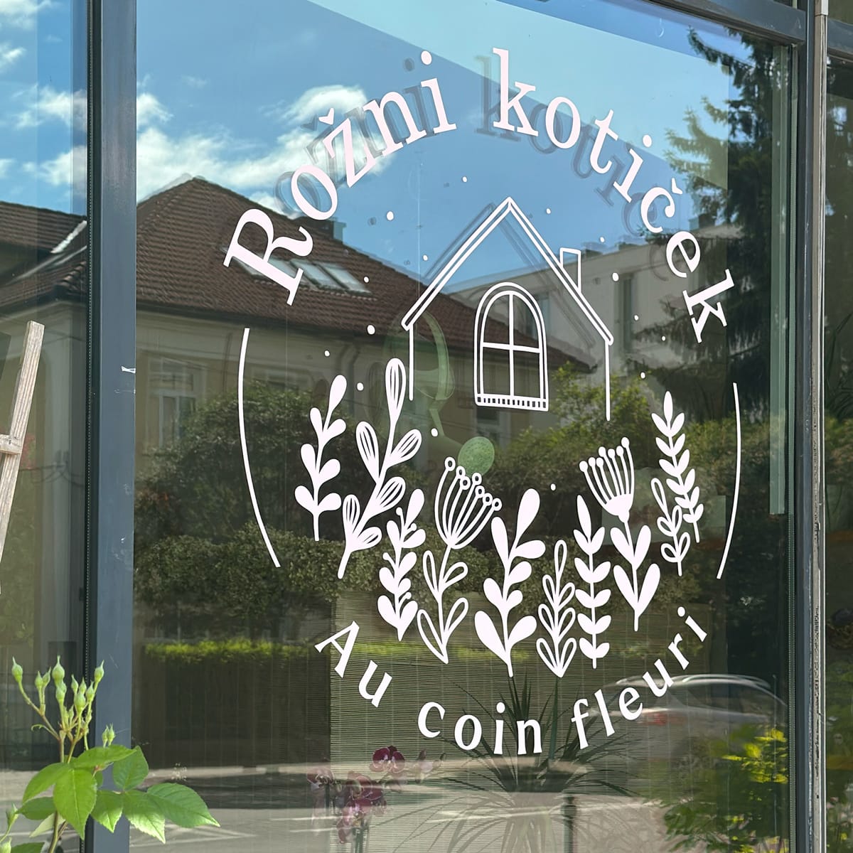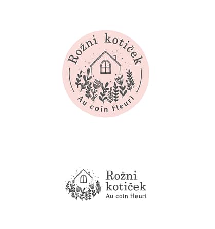 I created the full brand identity for Rožni Kotiček, including the logo, business cards, and a custom sticker design, achieving a consistent and visually appealing look across all brand elements.