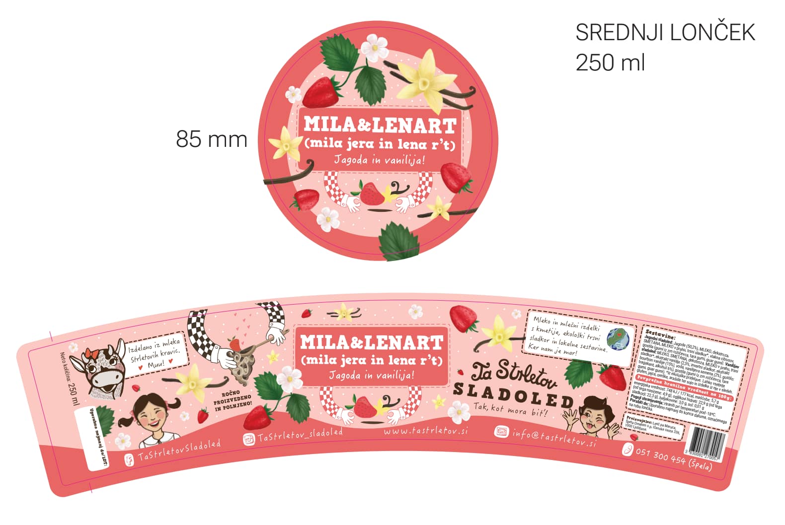 Ta Strletov sladoled is a homemade ice-cream brand known for its playful character and delicious, artisanal flavors. For this project, I created the full visual identity — including branding, custom illustrations, graphic elements, and packaging design — giving the product a fun, memorable, and cohesive look that reflects its homemade charm and high-quality taste.